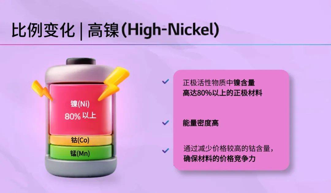 > > > > >高镍正极材料是指减少钴的比重,将镍含量提高至80%以上的正极材料。>