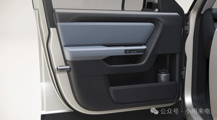 >与现有的R1S/R1T设计的另一个不同之处在于门上的扬声器被移除,留下更多的存储空间,当然,它不会是没有手电筒的Rivian:>