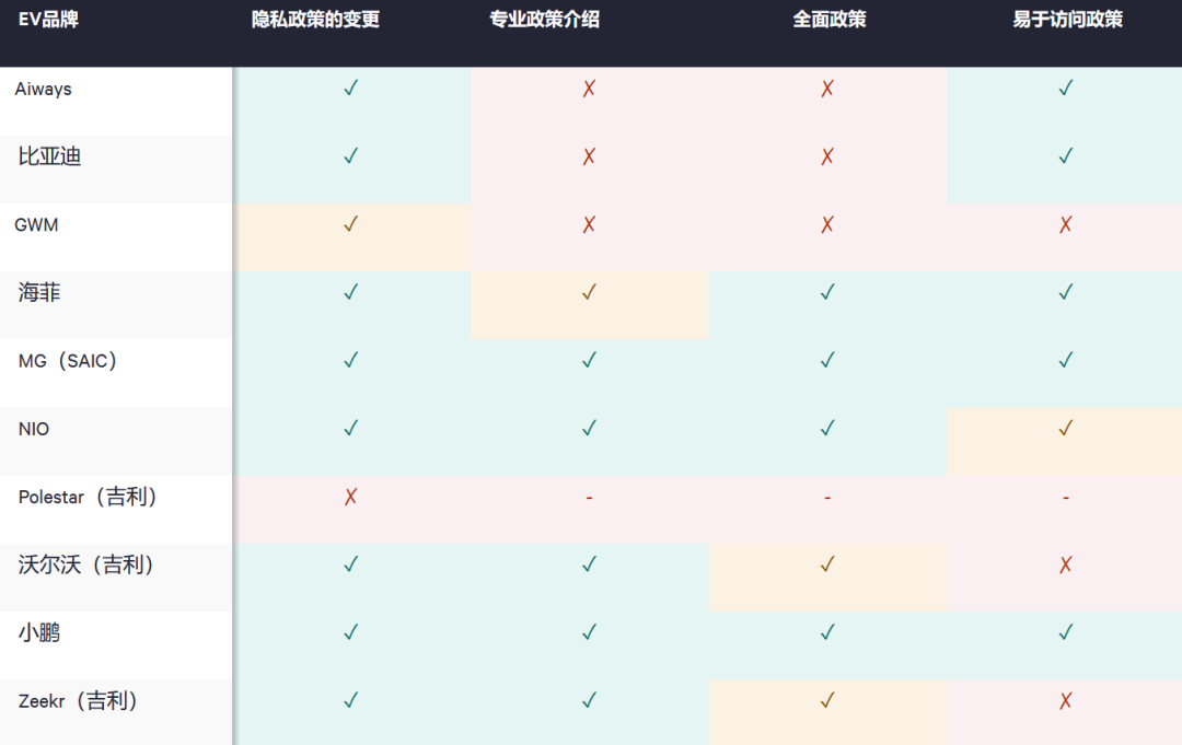 > >>Aiways、比亚迪和GWM这三家公司的隐私政策发布方式完全不符合标准。> >