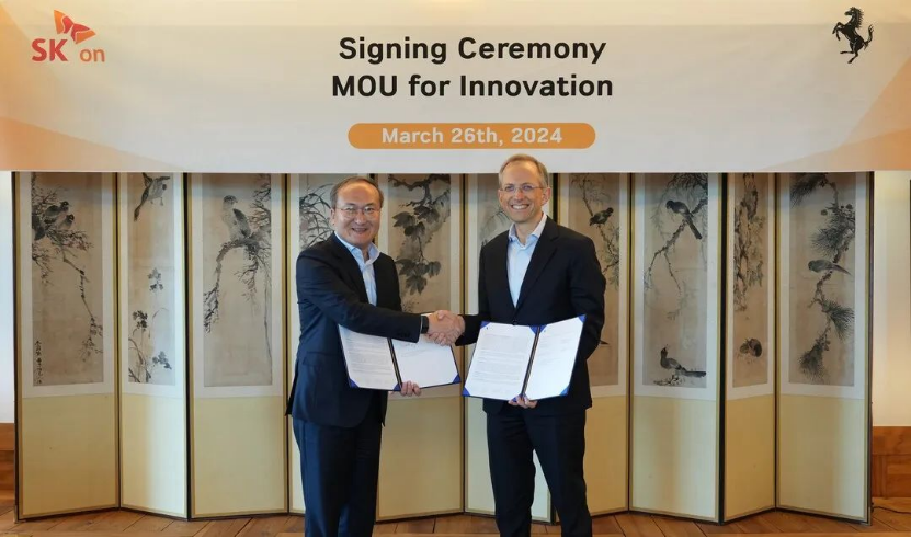 >>3月27日,SK On官方发布与全球超跑品牌制造商法拉利签署了“电芯技术革新业务合作协议(MOU)”。此次协议是以SK On此前向法拉利的插电式混合动力汽车(PHEV)供应动力电池为契机,双方开始进一步深入合作,借此加强两家公司的综合竞争力。> > >