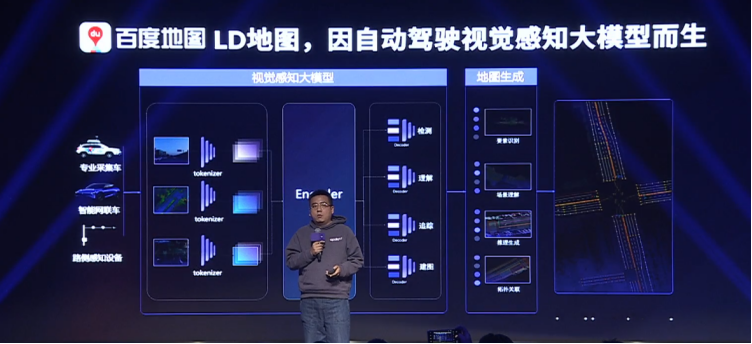 >百度采用了数百辆的L4级别的采集车在全国跑采集地图数据,并且应用百度阿波罗资源的视觉感知大模型,彻底的重构了传统地图的生产模式。“>以前是95%是靠人,现在99%靠端到端的模型,>先生成一个非常高质的LD地图,之后仅用1%的人解决最后的质量问题,完全颠覆过去地图的生产模式,所以它突破了高清地图过去无法大规模生产的问题。”尚国斌说道。> >