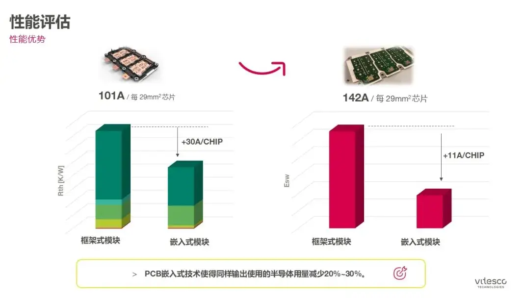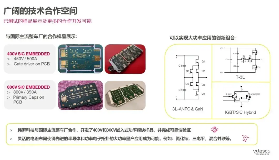 >基于这一结果,纬湃科技做了一定的探索,测试PCB材料对功率芯片的高工作结温的耐受,PCB对不同工况下的温度变化的耐受,以及PCB工作在高电压大电流工况下的绝缘性能等。纬湃科技发挥多年来在传统封装设计中积累的经验,攻克多种技术挑战,最终将完成PCB嵌入式功率模块的产业化。>
