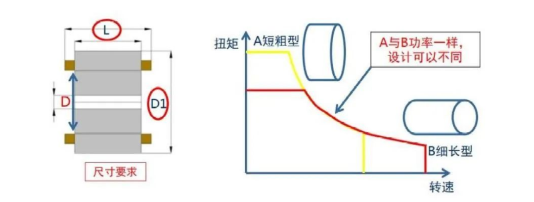 众所周知,电机的功率= 转速*转矩。电机的体积和功率没有太直接的关系,电机想要小型化,就需要考虑在体积不变的情况下提升输出功率(输出功率 = 磁负荷 × 电负荷 × 转速),那就意味着在输出功率不变的情况下体积可以变小。