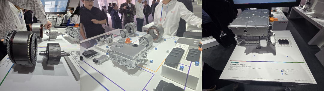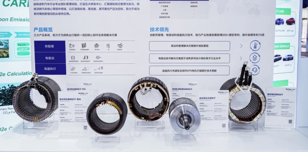 >电机部分展示了>扁线定子、圆线定子、永磁转子>等高能效电机产品,其电驱产品能够根据整车厂商需求柔性定制功率与扭矩,以高效率表现为整车提供更强劲马力。>
