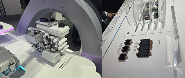 >博世这次也是拿出了众多展品有新一代的碳化硅功率模块>CSL和LSL>,采用博世第二代1200V,9毫欧的碳化硅>(SiC)>芯片产品>、还有动力域融合控制器和新能源车热管理系统等产品与>方案。>