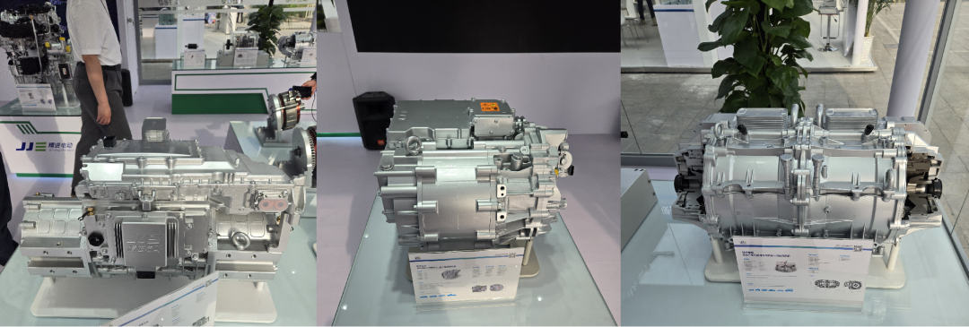 >精进电动这次展出的电驱总成产品也不少,其中的>三合一电驱动总成系列>集成了方导体电机,碳化硅控制器和高效减速器,系统最高输出扭矩6100Nm,输出功率可达300kW。>