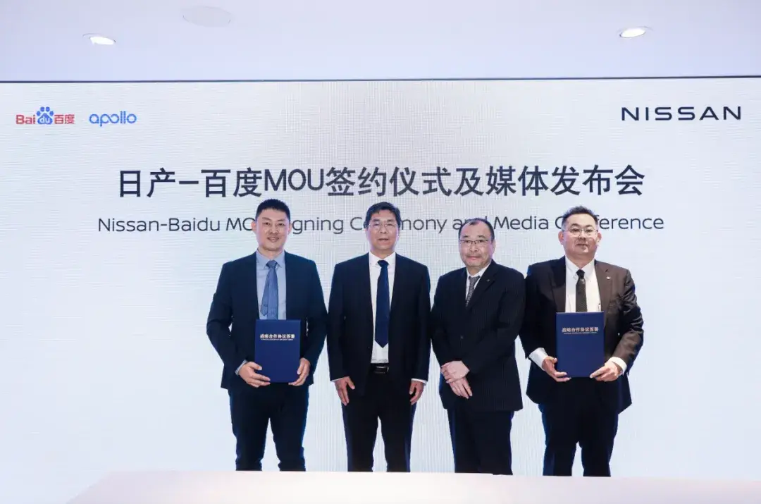 4月25日,日产(中国)投资有限公司与百度在线网络技术(北京)有限公司共同签署了谅解备忘录, >双方将开展在人工智能(以下简称AI)与智能汽车领域战略合作的可行性研究。>