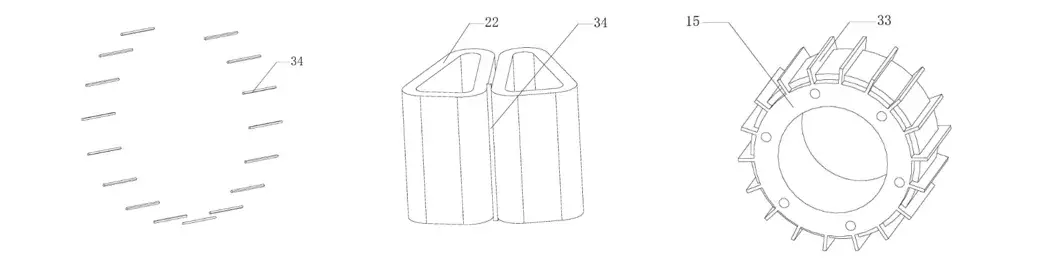 >>此外,部分定子铁芯的一端还设有>定子齿靴>,通过支架连接到多个定子铁芯上,>增强整体结构稳定性>及>散热效果>。> >