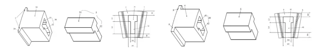 >>凹槽设计为>T型槽>,并且详细定义了各个方向上的尺寸参数,以便进一步>优化磁场分布>和>减小谐波影响>。定子轭设> >计成>圆环状>,并设置有多个>插接槽>,用> >于将极靴沿轴向插入固定,简化装配过程并确保限位可靠。> >