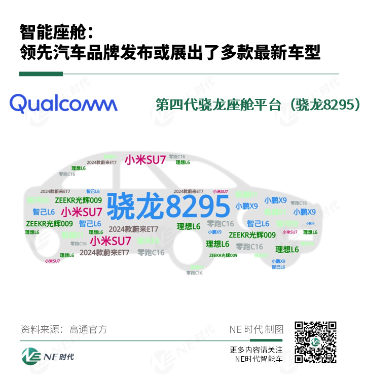 本届车展,基于骁龙8295的先进特性,领先汽车品牌发布或展出了多款最新车型,包括小米SU7、全新理想L6、零跑C16、2024款蔚来ET7、小鹏X9、极越01、ZEEKR光辉009、智己L6、银河E8等。>