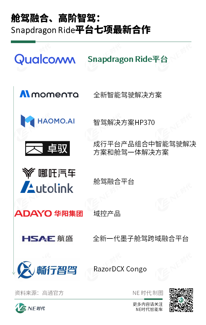 > >在北京车展,高通携手中国合作伙伴先后宣布在舱驾融合、高阶智驾领域的七项最新合作:>