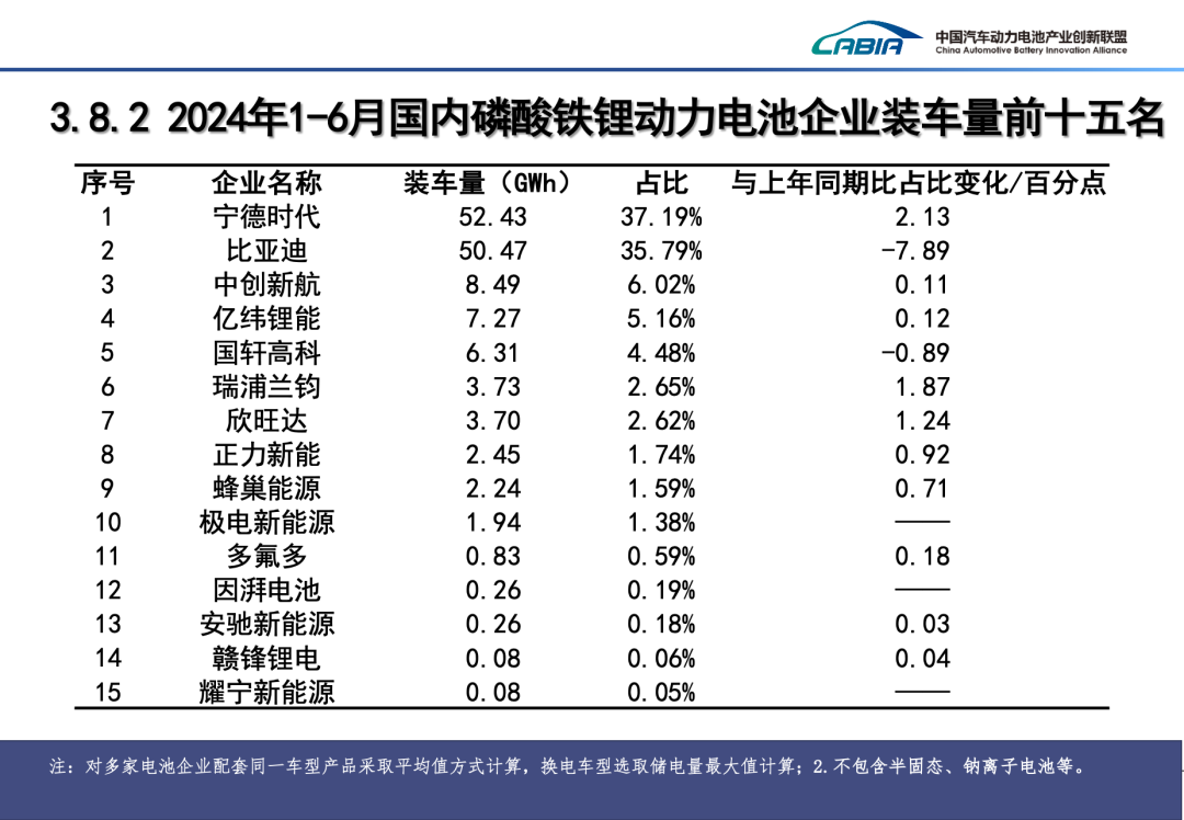 >>1-6月,我国动力电池累计装车量203.3GWh, 累计同比增长33.7%。其中三元电池累计装车量62.3GWh,占总装车量30.6%,累计同比增长29.7%;磷酸铁锂电池累计装车量141.0GWh,占总装车量69.3%,累计同比增长35.7%>。> >