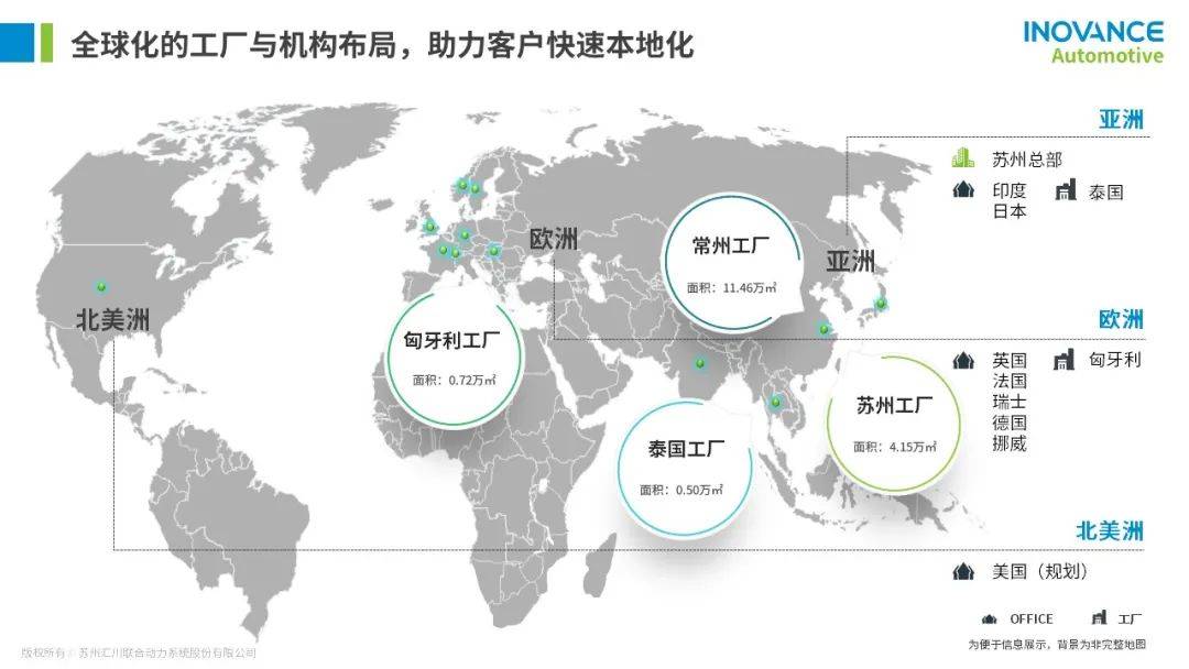 汇川联合动力通过参与10多个国际项目,积累了丰富的国际平台产品开发经验,具备快速开发满足海外客户本地化产品需求能力,可高效助力国内客户出海。公司在全球范围内设立了8大办公基地和欧亚4处生产基地,确保能够快速响应全球市场的需求。>