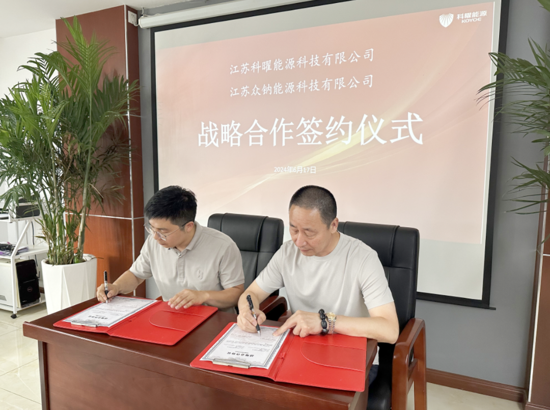 6月17日,科曜能源与众钠能源签署战略合作协议,共同推动江苏地区的钠电分布式储能示范项目的开发与落地。科曜能源董事长兼总经理毛建良先生与众钠能源夏刚董事长代表双方签署战略合作协议。双方将在工商业储能项目上建立长期战略合作伙伴关系,围绕智能化、系统化强化合作,“>钠>”启储能新篇章。>