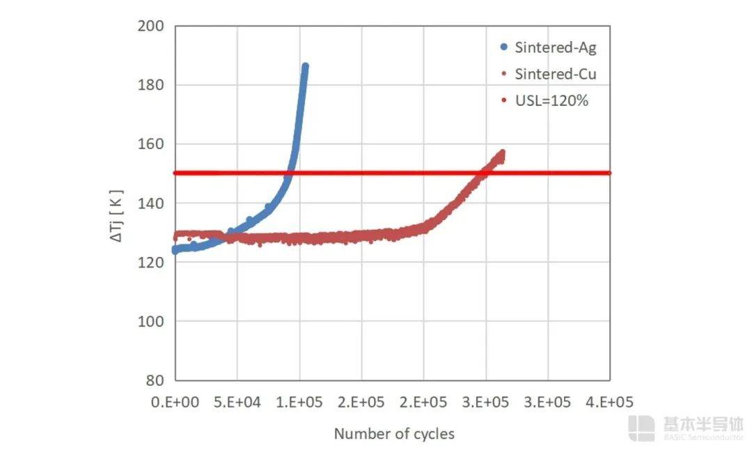 >二是在热冲击测试中,铜烧结展现了高可靠性。寿命表现超过了银烧结模块30%,并且没有观察到明显的界面破坏。> >