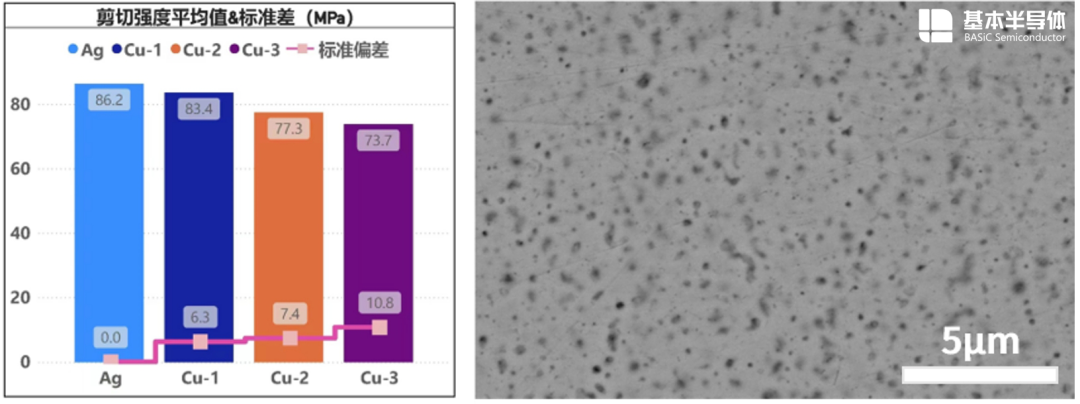 >其次是 >关于性能方面>。一是 >铜烧结的熔点更高,因此理论材料疲劳性能要优于银烧结>。基本半导体热冲击试验也说明了这一点。二是 >基板表面同样是铜,两者材料相同,所以界面更加稳定稳定>。基本半导体也提到, >单纯的界面组成也能够最大限度地抑制原子扩散、金属间化合物生成等互连退化现象,降低界面处的接触电阻、热阻,并优化电流分布。> >