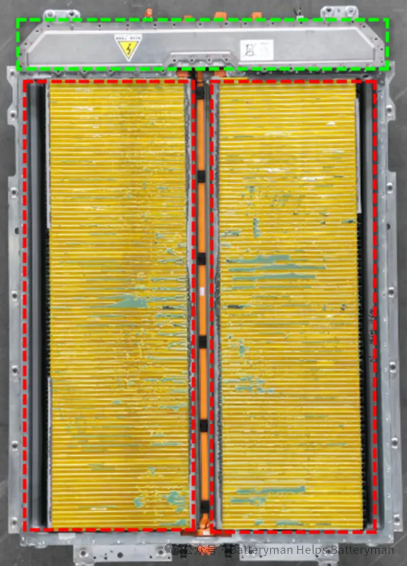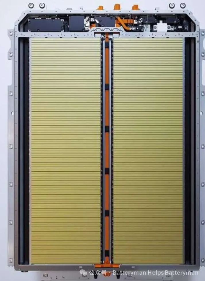 与小米>SU7>的弗迪电池包排布类似,金砖电池由两个大的模组组成,横向方向两个电芯并排,中间空间留给高压连接,高压舱布置在后端。这有可能是业界主流的解决方案。> >