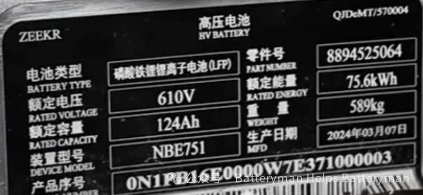 极氪>007>目前采用的电池包有两个版本,一个是来自时代吉利(宁德时代与吉利的合资公司)版的麒麟电池(常规电芯设计,电芯正立布置方案),电池能量为>100kWh>;另一个就是极氪自研自产的金砖电池,电池能量为>75.6kWh>。今天小编带大家了解一下极氪自产的>75.6kWh>金砖电池组。> >
