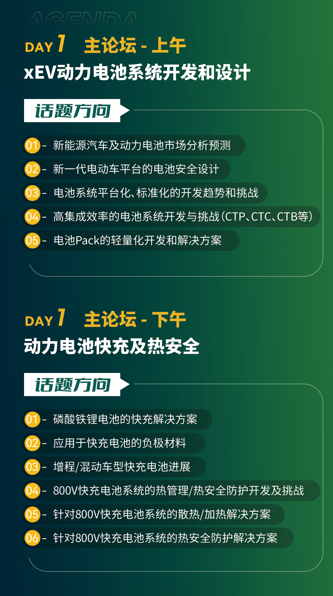 > > > > > >为期两天的论坛将深度聚焦新能源动力市场电池及发展趋势与政策分析。>聚焦动力电池快充及热安全,涵盖磷酸铁锂电池的快充解决方案,应用于快充电池的负极材料,以及针对800V快充电池系统的散热/加热和热安全防护解决方案。>