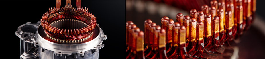 ◎>电机部分:>特斯拉定子铁芯采用近500片0.25毫米的超薄硅钢片,厚度更薄,损耗更小,发热也更少,可帮助电机提升效能超过3%。其首创的10层扁线定子,相比圆铜线,扁线可让定子内部更紧实,槽满率提升62%,发热损耗也更少。>
