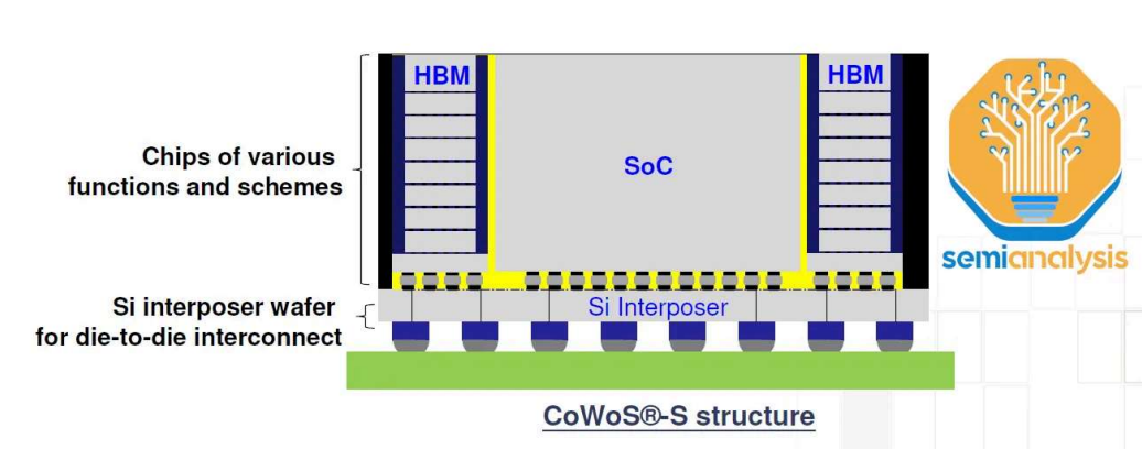 >回顾一下,CoWoS-L使用带有本地硅互连(LSI)的RDL中介层,并在中介层中嵌入桥接芯片,以桥接封装上各种计算和内存之间的通信。与此相比,CoWoS-S在表面上简单得多,是一块巨大的硅片。> >