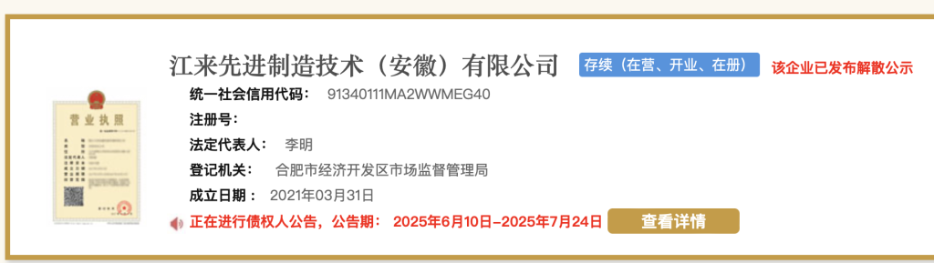 蔚来与江淮汽车(600418)合资公司宣告注销。>