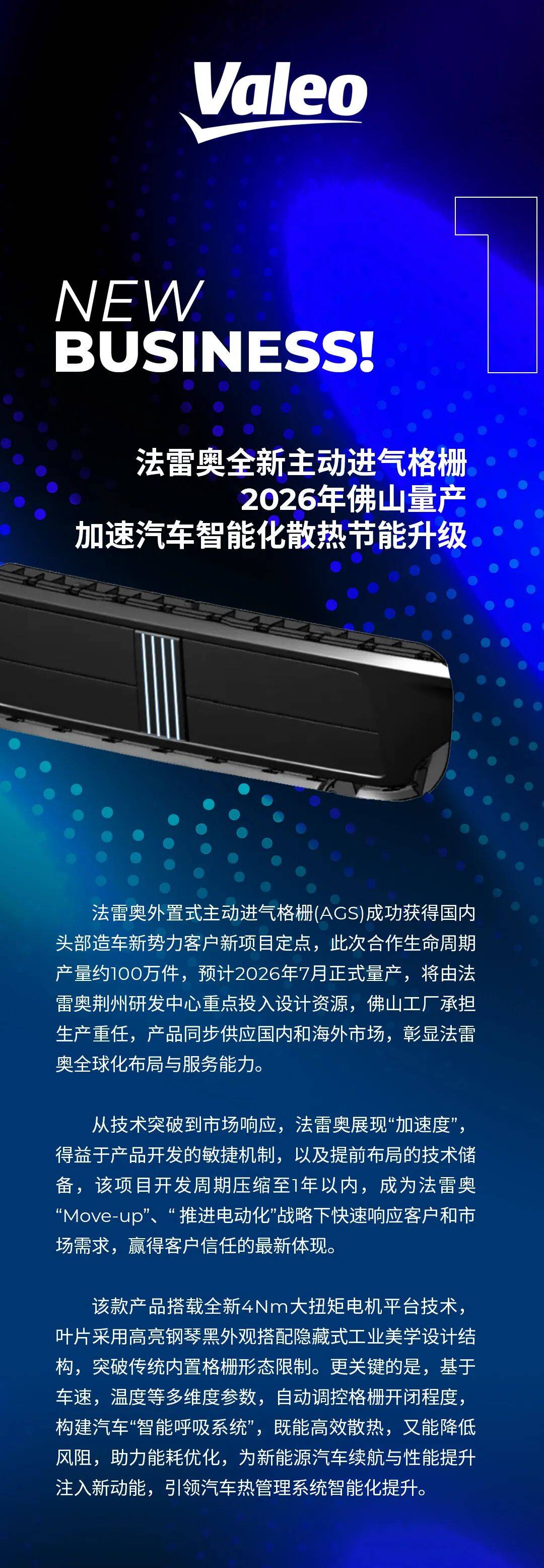 > > > >近日,法雷奥宣布新一代双电控解决方案已与两家中国主流汽车制造商签订量产合同。通过深度集成与架构优化,法雷奥的这一创新成果为汽车电动化的效率提升与紧凑型设计树立了全新标杆。该解决方案计划于2026年开始量产,并搭载于客户的插电式混合动力车型。法雷奥动能系统事业部首席执行官XavierDupont表示:...