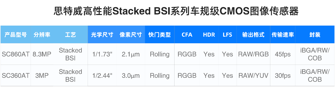此外,SC860AT还支持RW与COB封装版本,能够为客户提供多样、灵活的产品配置选择,助力车载前视、侧视、后视及舱内OMS摄像头应用设计的加速升级。