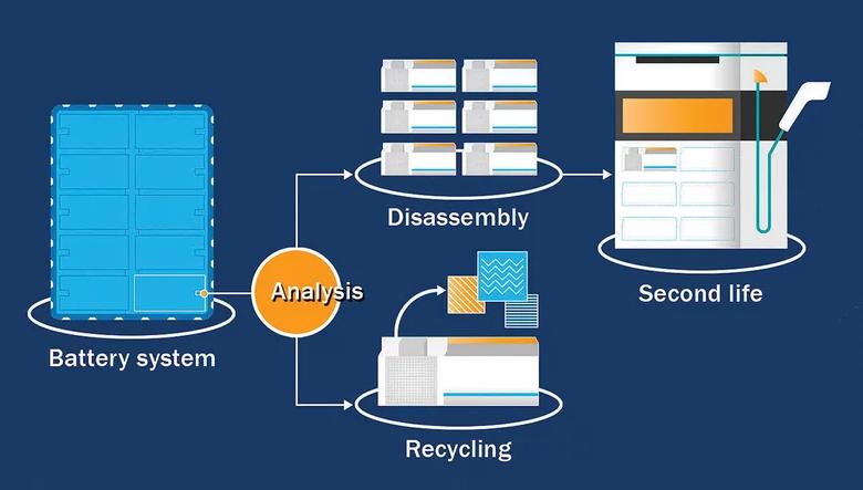 鉴于平均驾驶循环(行驶工况,driving cycles),如今的锂电池组的预计使用寿命约为10年,相当于近15万英里的续航里程数。在欧洲和中国,车企被要求提供其产品使用寿命终结后的后续处理策略,尤其是那些会对环境造成危害的电池材料。