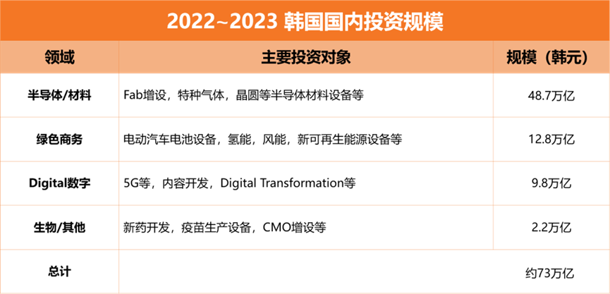 > >SK为了预见性地应对近来不确定的经济环境和地缘政治风险等,决定在今明两年内投资73万亿韩元,集中对主要关联公司的韩国本土生产设施进行增设或翻新,以巩固其核心内生力和确保其技术创新力。同时,在截止到2023年实行的韩国国内投资也集中在半导体/材料(48.7万亿韩元,约合350亿美元)、绿色商务(12.8万亿韩元,约合92亿美元)、数字(9.8万亿韩元,约合70亿美元)、生物/其他(2.2万亿韩元,约合16亿美元)等BBC产业。>
