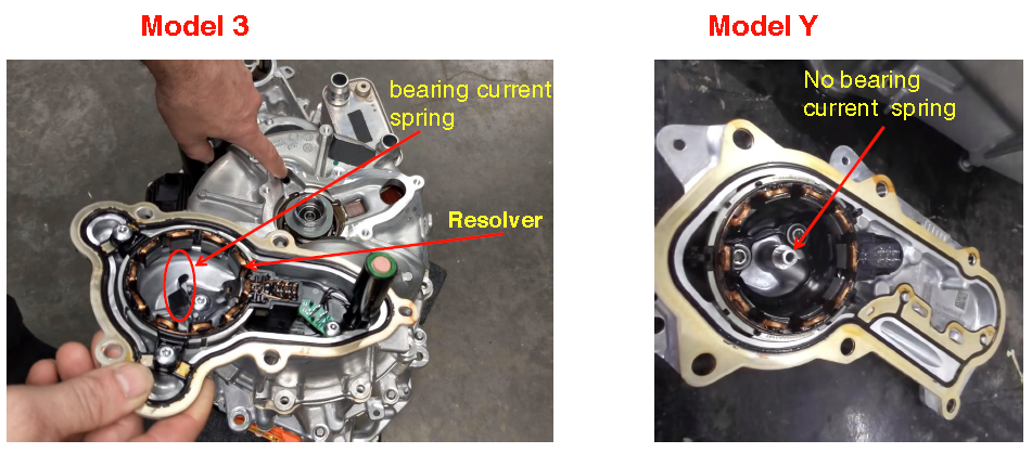 两者都使用旋转变压器进行转子位置传感,但Model Y 不再使用轴承电流弹簧。>