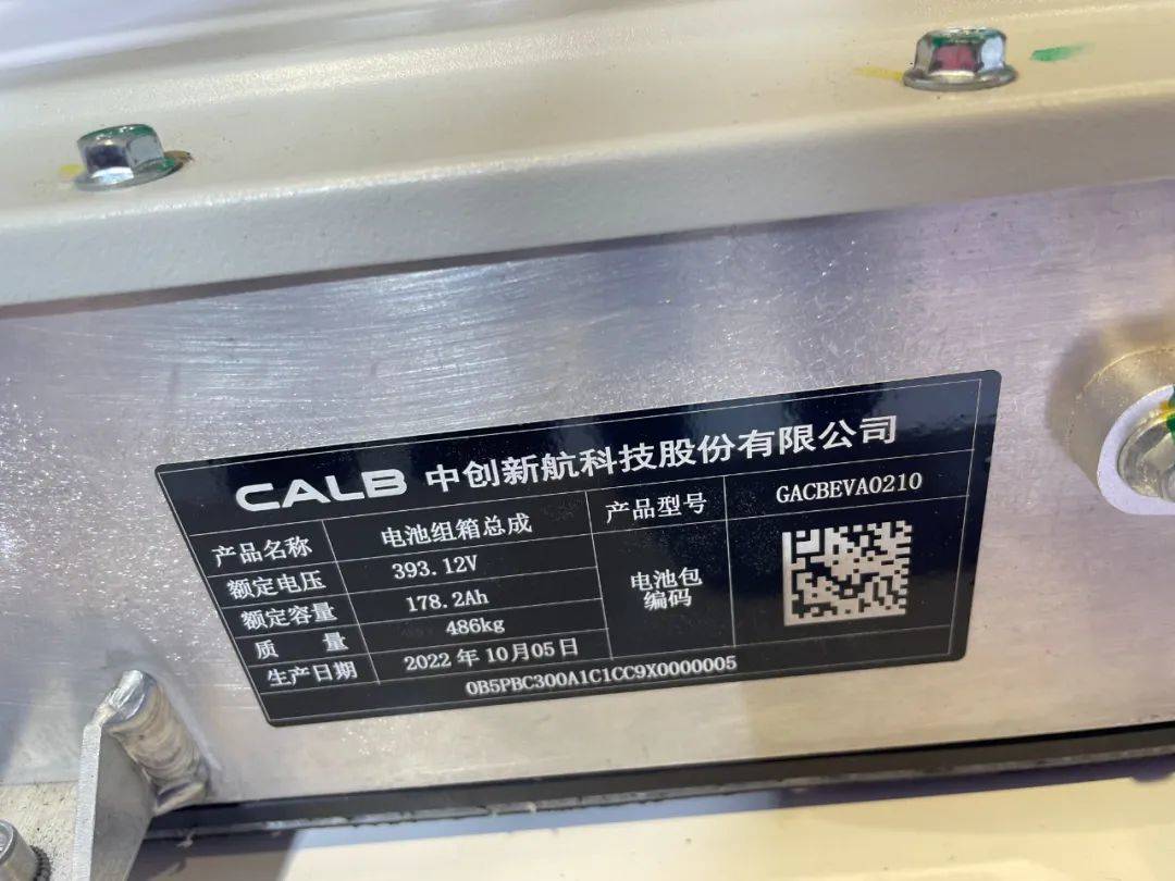 >>电池包显示生产时间为2022年10月5日。>上盖使用铆钉固定,底部为防护板、阻燃泡棉和冷板,侧边部件多以铆钉和焊接方式固定,与整车通过下箱体边框延伸部分连接。>中创新航透露,匹配给埃安Hyper GT的OS磷酸铁锂电池包,能量密度高达153Wh/kg。> > >