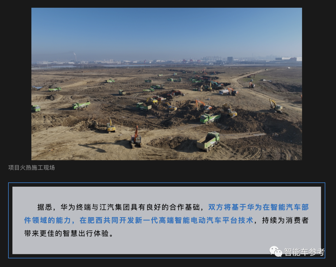 先是在今年1月,公众号肥西发布就曝光了华为终端和江淮汽车将在合肥市肥西县开展合作,共同开发新一代高端智能电动汽车平台。