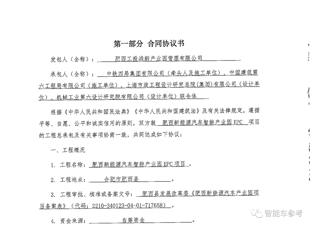 虽然消息发出后不知为何被删除了,但是根据合同《肥西新能源汽车智能产业园项目EPC》,双方合作的工厂确实正在建设。