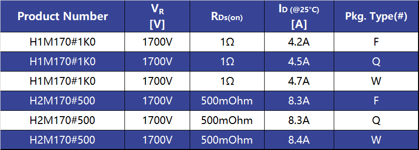 1700V/500mΩ产品的封装设计更趋紧凑,在已量产的1700V/1Ω产品的基础上进一步减小导通内阻,过电流能力大幅增加,可对标更大功率产品的应用需求。TO-263-7L和TO-247-3L/4L三种不同的封装设计,旨在满足客户插件和贴片的不同使用需求。