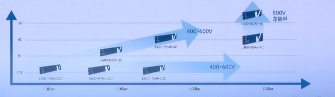 >>在BEV领域,蜂巢能源推出了L400和L600两种规格的LFP短刀快充电芯,容量分别为105Ah, 130Ah和133Ah,可以实现最高4C的充电倍率。按照规划,基于L600的短刀快充电芯将覆盖3-4C场景,预计2024年Q3量产;基于L400的短刀超快充电芯将覆盖4C及更高倍率场景,满足市场主流800V高压车型,将于2024年Q4量产。> > >