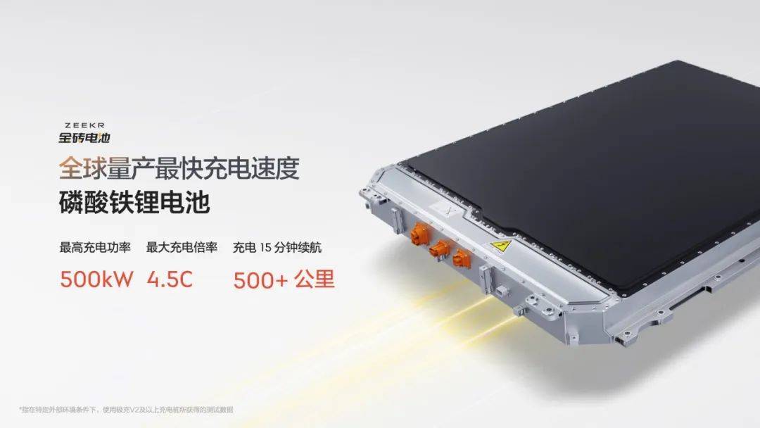 >>12月14日,> >极氪发布金砖电池,同样号称全球首款量产超快充磷酸铁锂电池。> >官方信息称,得益于浩瀚架构的全域800V平台,金砖电池匹配800V极充V2/V3充电站,最高充电功率可达500kW。最高实现4.5C充电倍率;极充15min实现续航增加超500km+。低温-10℃充电,金砖电池仍然可以实现优异的充电速度,相比同类型产品,提升至少四分之一。> > >