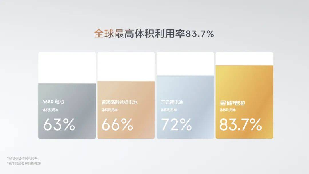 >>在各家电池新品中,> >极氪金砖电池的体积利用率更极致,最高达到83.7%> >。作为对比,极氪列了一串数据:行业著名的4680电池体积利用率为63%;普通的磷酸铁锂电池,体积利用率是66%;三元锂电池的天花板,体积利用率刚突破72%。> > >