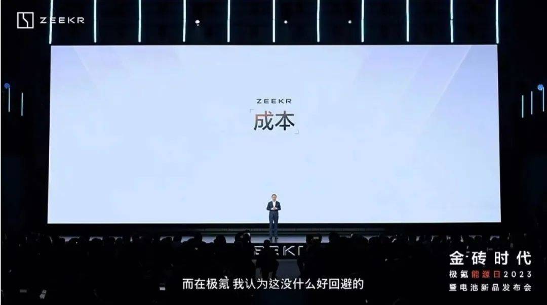 >>而且,极氪发布会用大幅篇章讲了“成本”,并称金砖电池除了在安全、体验上,还将在成本上引领800V时代。CEO安聪慧说,“别的企业把这个话题可能作为内部的讨论,而在极氪,我认为这没有什么好回避的。优秀的成本控制能力是企业技术水准的体现。金砖电池从电芯到电池包全部自研自造,通过平台化设计、集成化设备和智能环保的运营能力,金砖电池的整体生产效率提升了40%。效率的提升带来更好的成本竞争力。在同等性能情况下,对比三元锂电池,金砖电池的整体成本每度电可以降低14.8%左右。”> > >