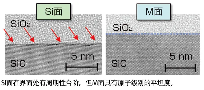 使用扫描非线性介电常数电镜(SNDM)测量的结果表明,3C-SiC表面的缺陷密度仅为4H-SiC的两百分之一。SLE法大幅降低了界面缺陷密度,预测制作的MOSFET可将损耗降低30%以上。