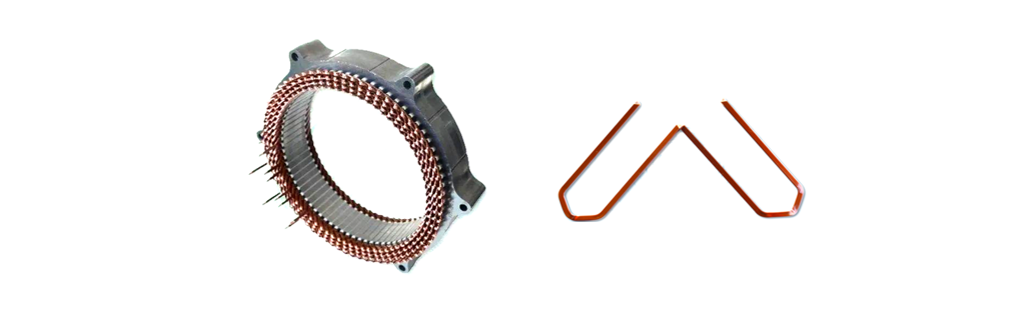 在工艺方面,博格华纳的X-pin为了降低端部高度,采用的斜面断线,在扭线方面采用特殊工艺,将断部扭转到相应尺寸位置,要求既能实现扭转又能降低端部尺寸。