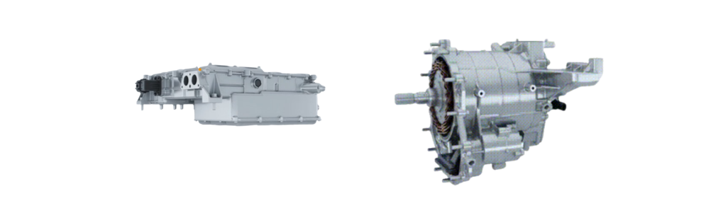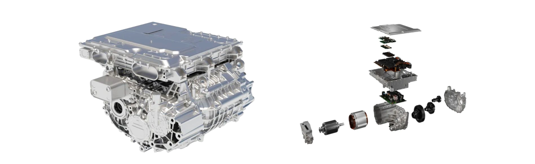 其整体性能较上一代功率密度提升20%,整机重量和体积分别降低15%、20%,系统综合效率达到89%。其最大功率270kw,可以实现前驱和后驱灵活驱动。