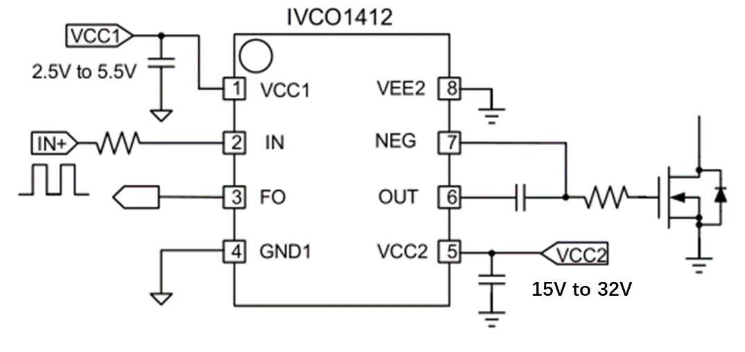 > >IVCO1412F集成了 >负压驱动>功能,带有NEG引脚。 > >